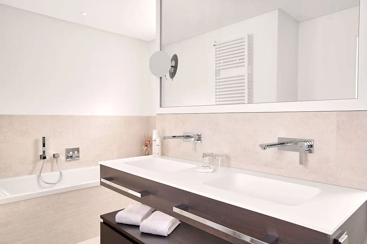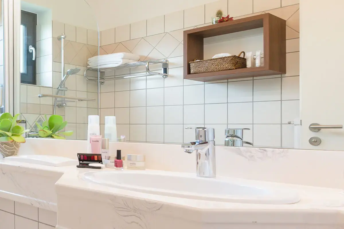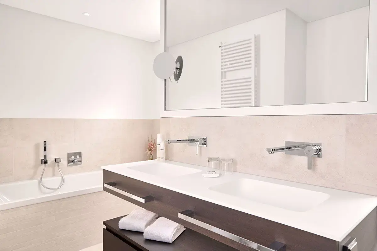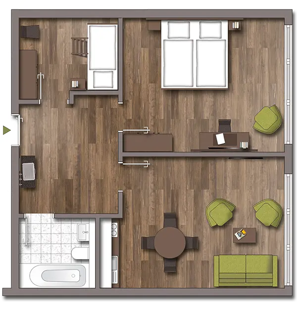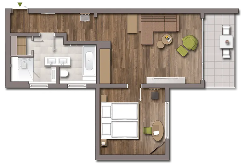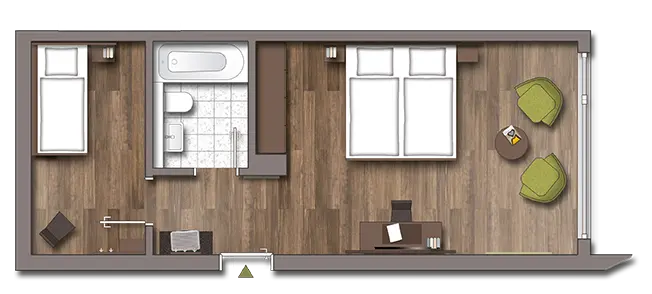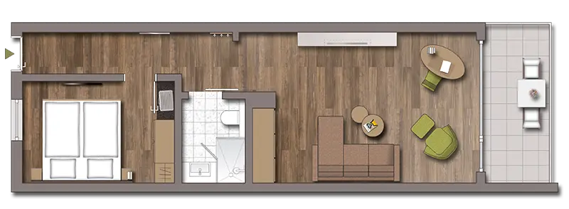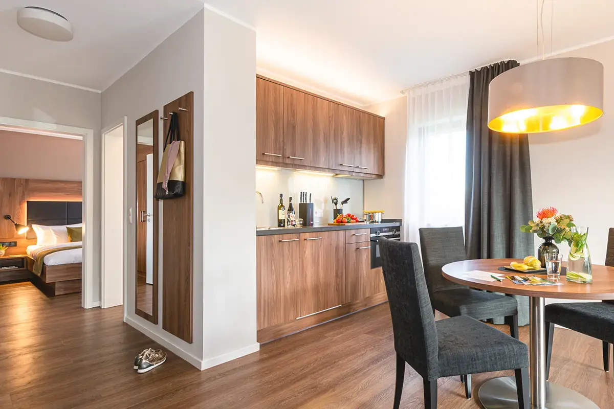 Hier haben wir ein Upgrade - für unsere Gäste mit gehobenen Ansprüchen. Alle Suiten verfügen über einen modischen Look. Hochwertige Materialien gepaart mit modernen Möbeln in grün und einem üppigem Platzangebot, so präsentieren sich Ihnen unsere Komfort Suiten. Auf mindestens 50 m² erwartet Sie eine stilvolle Einrichtung mit einem großzügigen Wohnzimmer und separatem Schlafzimmer.